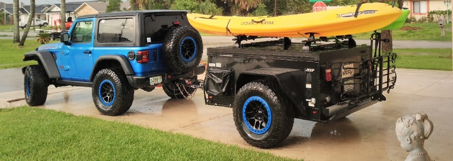 ![]() When pulling with a jeep it is so light you will wonder if it is even there. The entire camper is made with high tech materials including the Marine Quality canvas and izon glass. The frame is light weight but is a strong aluminum design. Composite materials used (no wood) nothing to degrade. The entire bottom is skid plated, nothing to get caught up on. Any area of the skid plate can easily support the weight of the trailer This allows it to be dragged over rocks if needed. See Details Specifications and pictures for more information. ![]() Opened Up Interior Pics Details & Specifications In Use